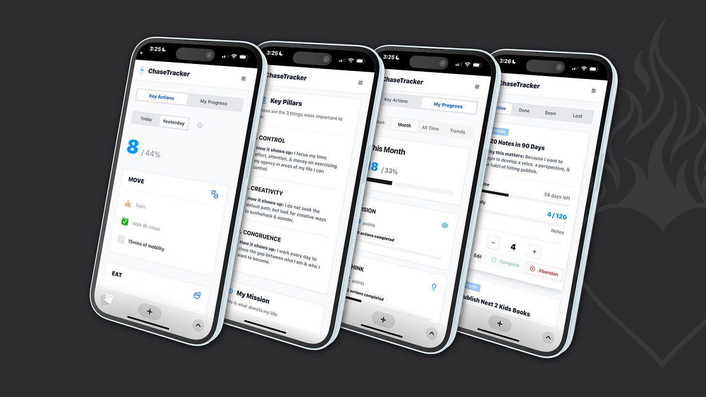 Every week on the podcast, we explore ideas about what it takes to chase what truly matters. But listening builds awareness. The ChaseTracker is where awareness becomes action - where you turn what you hear into what you do.